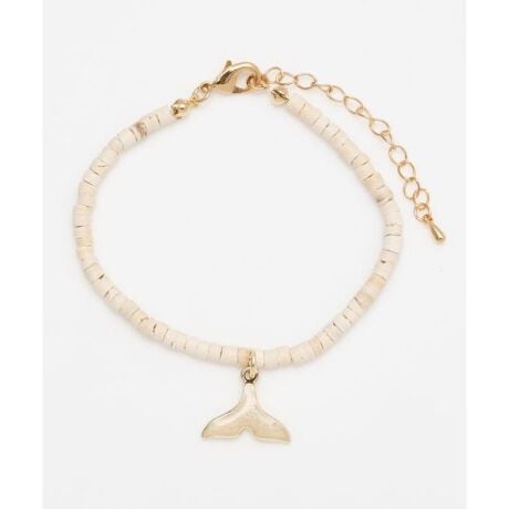 [型番:4KXZ5606-2025]ウッドビーズとホエールテールのブレスレット。ホエールテールは幸運を祈るアイテムとして、大人気のモチーフです。