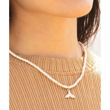 [型番:4KXZ5605-2025]ウッドビーズとホエールテールのネックレス。ホエールテールは幸運を祈るアイテムとして、大人気のモチーフです。