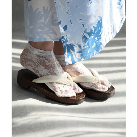 繊細なレース素材が華やかで上品な印象を与える、夏にぴったりの足袋風ソックス。