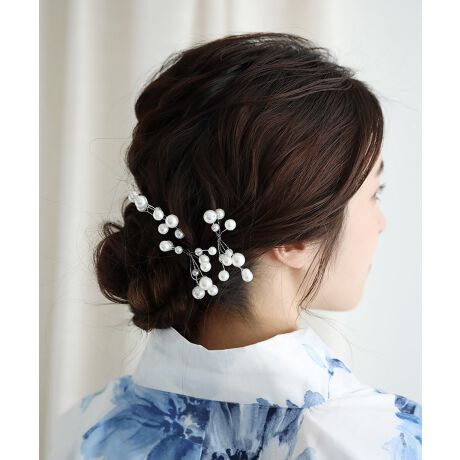 ワイヤー部分は自由に曲げられるため、髪型や好みに合わせて表情を変えることができます。アップスタイルはもちろん、シニヨンやハーフアップにもおすすめ。ピン部分はしっかりと髪に固定できるU字タイプで、安定感があります。