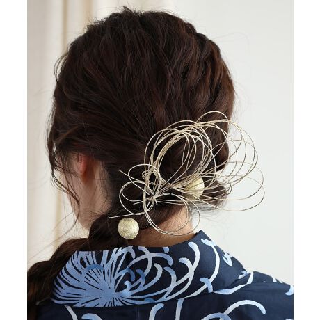セット内容には、丸く束ねられたワイヤーパーツ、金箔ボールUピン、組紐などが含まれており、自由にアレンジして装着が可能。まとめ髪や編み込みに添えるだけで、ぐっと洗練された印象に。