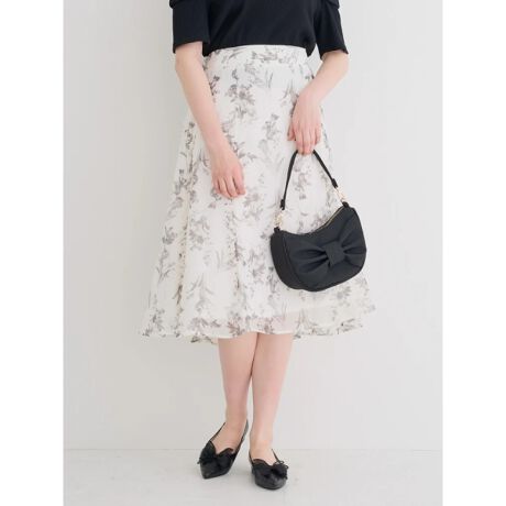 ・シアー素材に花柄プリントをあしらったフレアスカート。