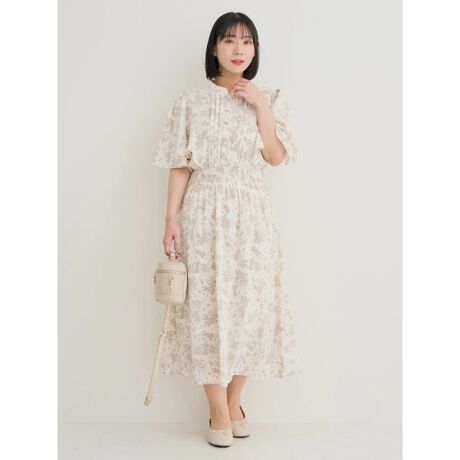 ピンタックフレアスリーブワンピース(無地・花柄)