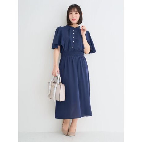スタンドカラーとピンタックが上品な印象を演出するワンピース。