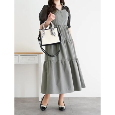異素材切り替えティアードワンピース