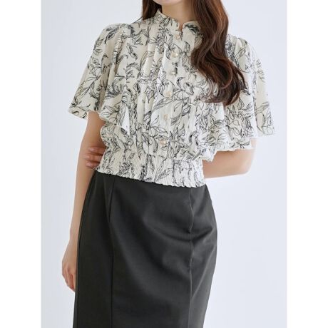 ・スタンドカラーとピンタックが上品な印象を演出するブラウス。