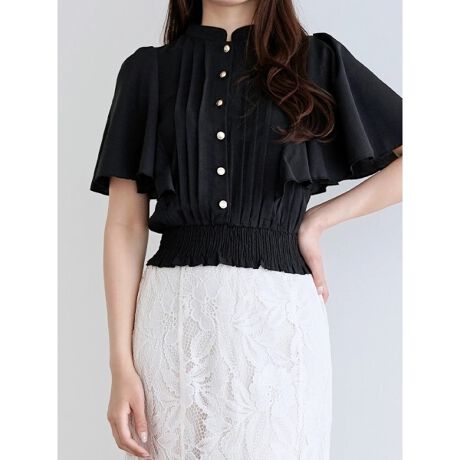 胸元のタックが華やかフェミニン袖フリルブラウス