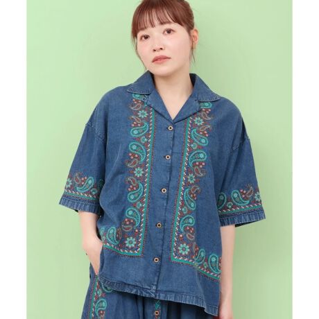 インドのカシミール地方が発祥のペイズリー柄を贅沢に刺繍で表現したデニムシャツ。
