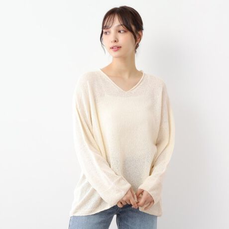 春の着用はウンドカラーブラウスと組あわせたり、夏はお手持ちのキャミソールや、タンクトップと組み合わせて、でさらっと着用いただけます。