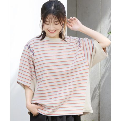 袖下のリブ切り替えがポイントのゆったりデザインTシャツ。