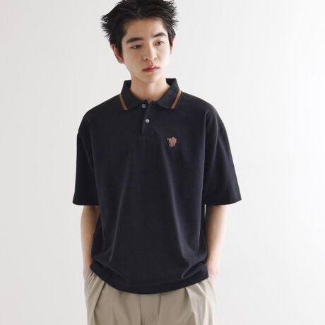 トレンドの胸にワンポイント刺繍のあるポロシャツ。