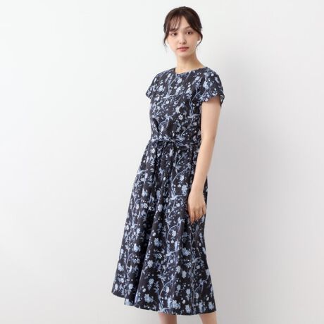 ウエストから広がるAラインと控えめなフレンチスリーブが上品な印象を与えます。