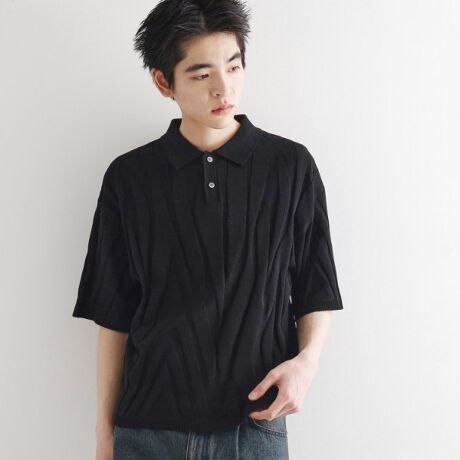 ドライなタッチ感が特徴のポリエステルベースの糸を使用したニット。