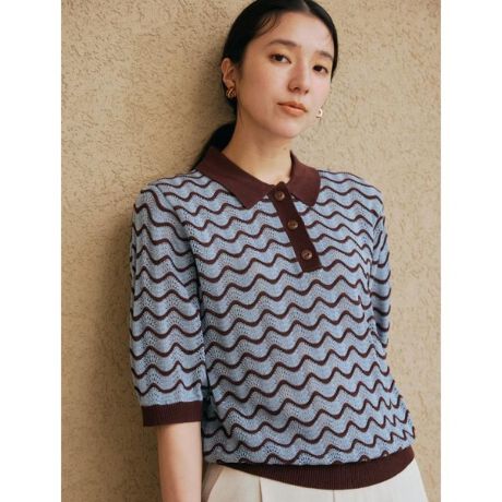 ジャガード編みと波柄の透かし柄が絶妙に組み合わさり、目を引くデザインが印象的です。