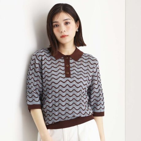トレンドの衿付きニットは、2タイプの柄編みを施したレトロかわいい仕上がりが魅力です。