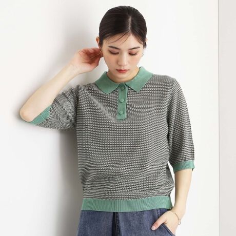 トレンドの衿付きニットは、2タイプの柄編みを施したレトロかわいい仕上がりが魅力です。