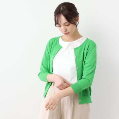 【接触冷感UVカット装飾クリアボタン】 ベーシックカーディガン