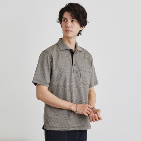 上品さを感じる千鳥柄とリラックス感のある素材で、ON/OFFどちらのスタイリングでも活躍する盛夏におすすめしたいポロシャツです。