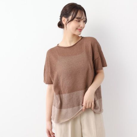 【日本製】ツムギ 裾ボーダー半袖プルオーバー
