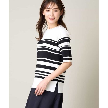 ◆ボートネックパフスリーブサマーニット:K2FGV69039