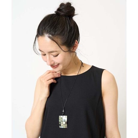 ・螺鈿細工が美しい蝶貝パーツを使った夏らしいネックレスです