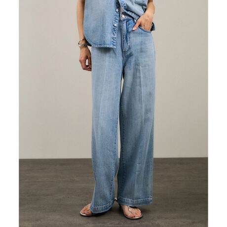 リネンやシアー、レースなど、軽やかな素材感のトップスと合わせ、爽やかな夏のデニムスタイルの完成。