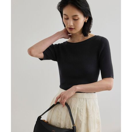 マルイウェブチャネル   /   ロペ   /   トップス   /   ニット・セーター   /   【洗える】【WEB・一部店舗限定】前後2WAYボートネックリブ5分袖ニット
