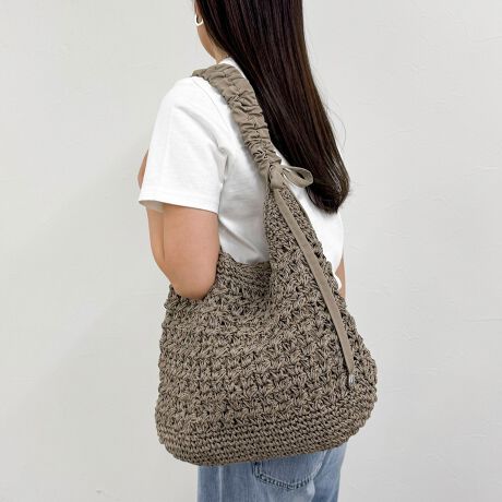 ・クシュっと寄せたショルダーと柄編みボディがポイントのトートバッグ