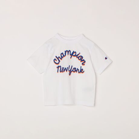 胸には筆記体による「Champion」と「New York(ニューヨーク)」を組み合わせたグラフィックで存在感のある仕上がりに。