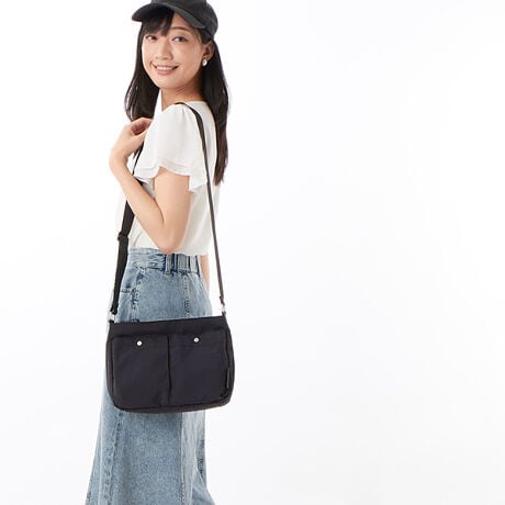 [型番:MHLH5FS1]天然染色の撥水されたリサイクルナイロンを使用しています。大きなダブルポケットがポイントで、軽量ナイロンバッグシリーズデイリーにお使いいただけます。