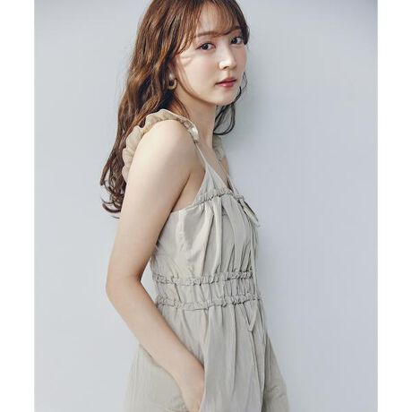 【ヨガインストラクターでインフルエンサーとしても大活躍の麻亜里さん×NBBコラボ企画】ツヤ感のあるタフタ素材を使用したカジュアルな雰囲気のオールインワンです。前身頃は切り替えを入れ、ギャザーをふんだんに寄せながら、フロントに共地リボンを施したデザインがポイント。肩紐は麻亜里さんこだわりのフリルデザインで、女性らしく可愛らしい印象に。後ろ身頃はゴム仕様のため、ストレスフリーな着心地です。<素材>程よいツヤ感と表情のあるタフタ素材を使用しています。<詳細>仕様・左ファスナー裏地・あり透け感・なし / 光沢・ややあり / 伸縮性・なし生地の厚さ・普通※モデルの着用画像の場合、光の当たり具合により、実際の色味と異なって見えることがございます。色味は、商品単体の画像をご参照ください。