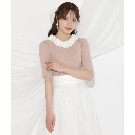襟のフリルが顔周りを華やかに彩るリブニットプルオーバー【Design】・ギャザーをたっぷりといれたフリルが主役のニットトップス。・コンパクトな着丈なので、春服や夏服にも着回ししやすくウエストインもしやすいです。・スリーブはタックでふんわりとしたシルエットに仕上げ、フェミニンさをプラスしました。・ドット柄や花柄など表情豊かなスカートと合わせて華やかなコーディネートがおすすめ♪・ネックレスを付けているようなアクセサリー感覚で楽しめる一着です。・後ろは涙開きのボタン留め仕様。【Fabric】・伸縮のあるリブニットを使用。・ご自宅でお手入れが出来るのも嬉しいポイント♪・ホワイト、ピンク、ブラックの3色展開となります。【Care】手洗い可能