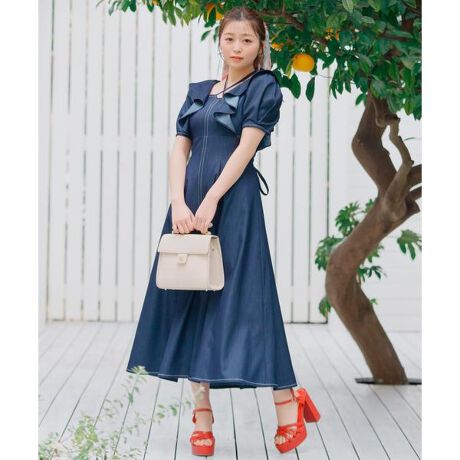 チョーカー風のクロスネックデザインが映える、フェミニンロングワンピース【Design】・ヘルシーなデコルテ見せとフェミニンなラッフルフリルで大人可愛く着こなせるフレアワンピース。・スクエアネックは華奢に見せてくれるだけでなく、アクセサリーのようなクロスデザインが映えます♪・後ろのレースアップを絞ることできゅっと美しいウエストラインを演出できます。・スリーブはタックで丸いシルエットに仕上げ、上品なエッセンスをプラスしました!・しっかりとした生地感はありつつも、しなやかさもあるので、美しいフレアラインを描いてくれます。・ウエストバックはゴム&レースアップ仕様。・背中ファスナー仕様。・クロスネックリボンはお好みのサイズ感に結んでいただけます。【Fabic】・程よいハリとしなやかさを持つ生地を使用。・裏地付き。・グレー、ネイビー、ブラックチェックの3色展開となります。【Care】ドライクリーニング