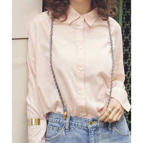 ゴールドのチェーンが華やかなデニムサスペンダー。