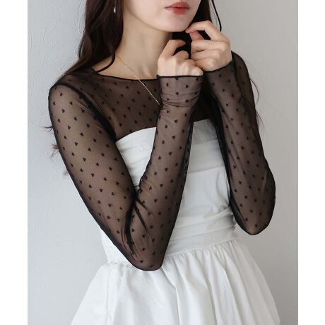 繊細なハートモチーフが散りばめられた、ロマンティックな透け感が魅力のチュールトップス