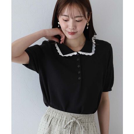 襟にレースをあしらい、女性らしいポイントをプラス。