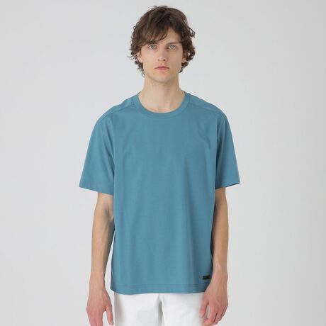 素材は表面を綿、裏面をポリエステルで編む事で滑らか且つ、上品な見映えのプレーティング天竺を使用。特殊加工により布帛の様なハリ感に加え、抗菌防臭や接触冷感機能を付与しています。ジャージー生地の産地として知られる和歌山の老舗ニッター「カネマサ莫大小」と共同で開発。ブラックレーベルにしかない、機能性・見映え共に優れた素材です。