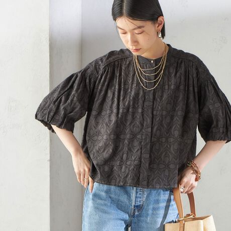 柔らかな風合いと、凹凸のある表面感の生地が魅力のブラウス。