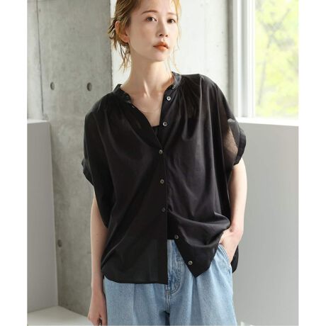 薄手のコットン素材に少し透け感があり、見た目にも実際に着た際にも清涼感あるシャツ。
