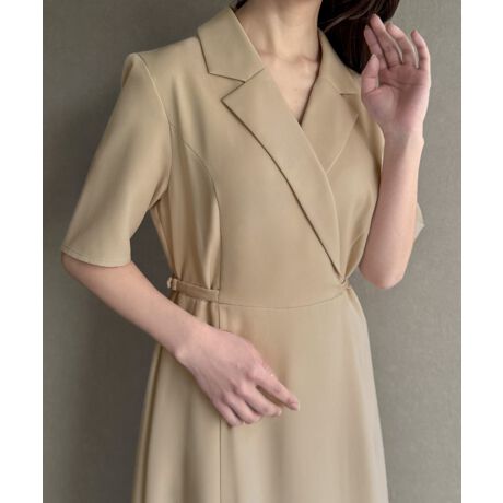 サイドベルト半袖テーラードフレアワンピース