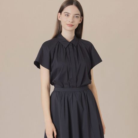 首元に寄せたギャザーが生み出すふんわりとしたフォルムのやさしい印象に、シャツカラーのデザインでクールさをプラスしたブラウスです。オンオフ問わず幅広く活躍する汎用性の高いアイテムです。同素材のスカート(品番:G5S17516)、プルオーバー(品番:G5M21516)もご用意しております。