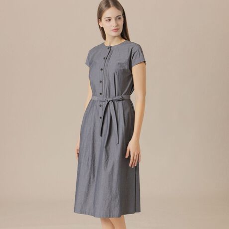 ベーシックなデザインにフロントのタックや釦をアクセントにし、トラッドな雰囲気に仕上げたワンピースです。身体のラインを拾い過ぎないシルエットで、オンオフ問わず幅広いシーンに活躍する上品な表情のアイテムです。アンダースカート付きです。