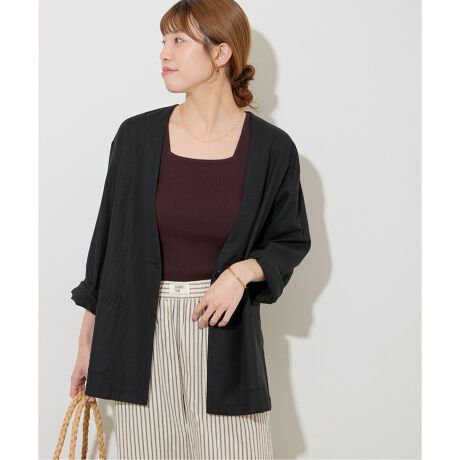 リネンミックスのノーカラージャケット。