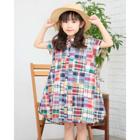 [型番:202R5833]4柄のマドラスチェックをパッチワークしたインド綿のワンピースです。一枚でも、前を開けて羽織りとしても、涼しさを感じられる春夏らしいアイテムです。