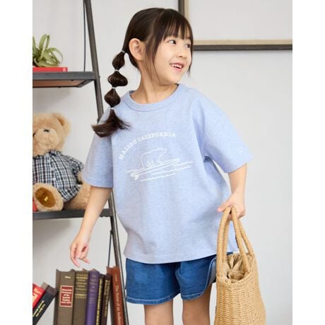 オリジナルのサーフデザインをプリントしたTシャツです。接触冷感・透け防止・吸水速乾性に優れ、滑らかな肌触りが特長のGB天竺を使用しています。襟ぐりは強度のあるフライスを使用、バインダー始末にすることでヨレにくいのが特徴です。