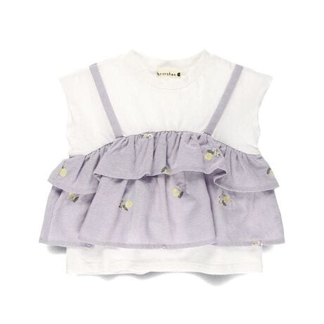 キッズ女児:12-5206-161 【おそろい】レモン&フラワー総柄刺しゅうドッキングTシャツ