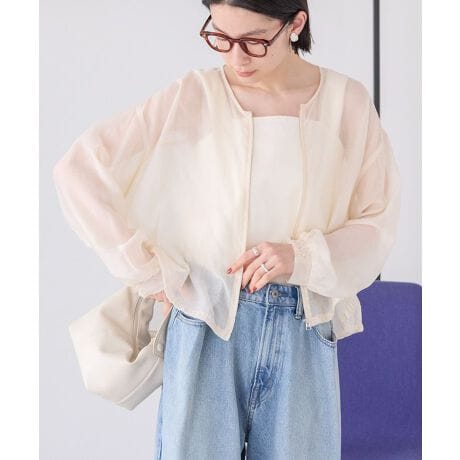 程よい透け感がトレンド感のあるノーカラーブルゾン。