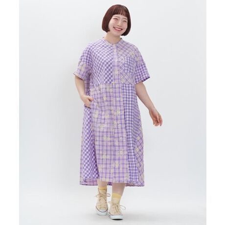 プリント入りのチェック生地と細かくループが出たふわふわとしたチェック生地をMIXしたワンピース。
