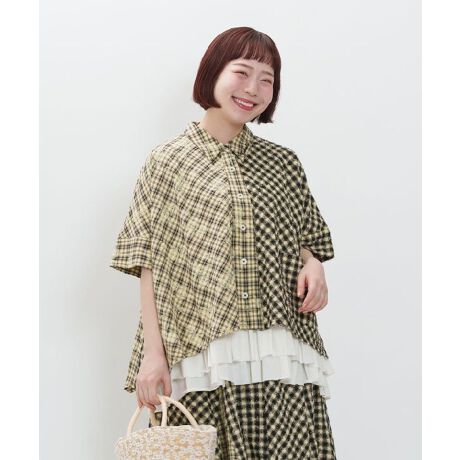 プリント入りのチェック生地と細かくループが出たふわふわとしたチェック生地をMIXしてシャツを作りました。