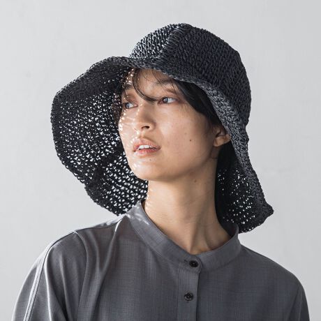 ざっくり編まれた質感が涼し気な、つば広タイプのペーパーハット。